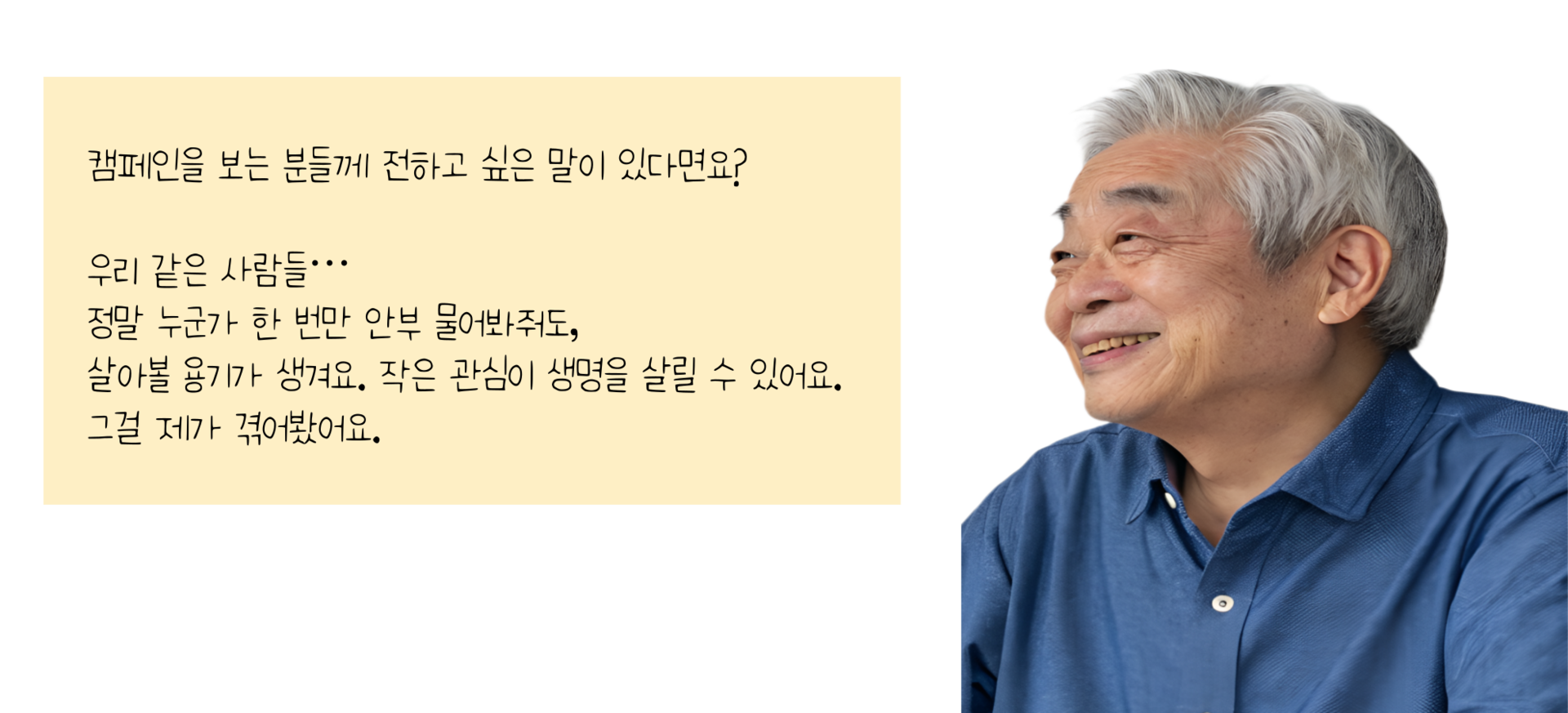 고독함과 외로움 끝에서 우리가 함께 하겠습니다. 당신의 후원이 따뜻한 온기와