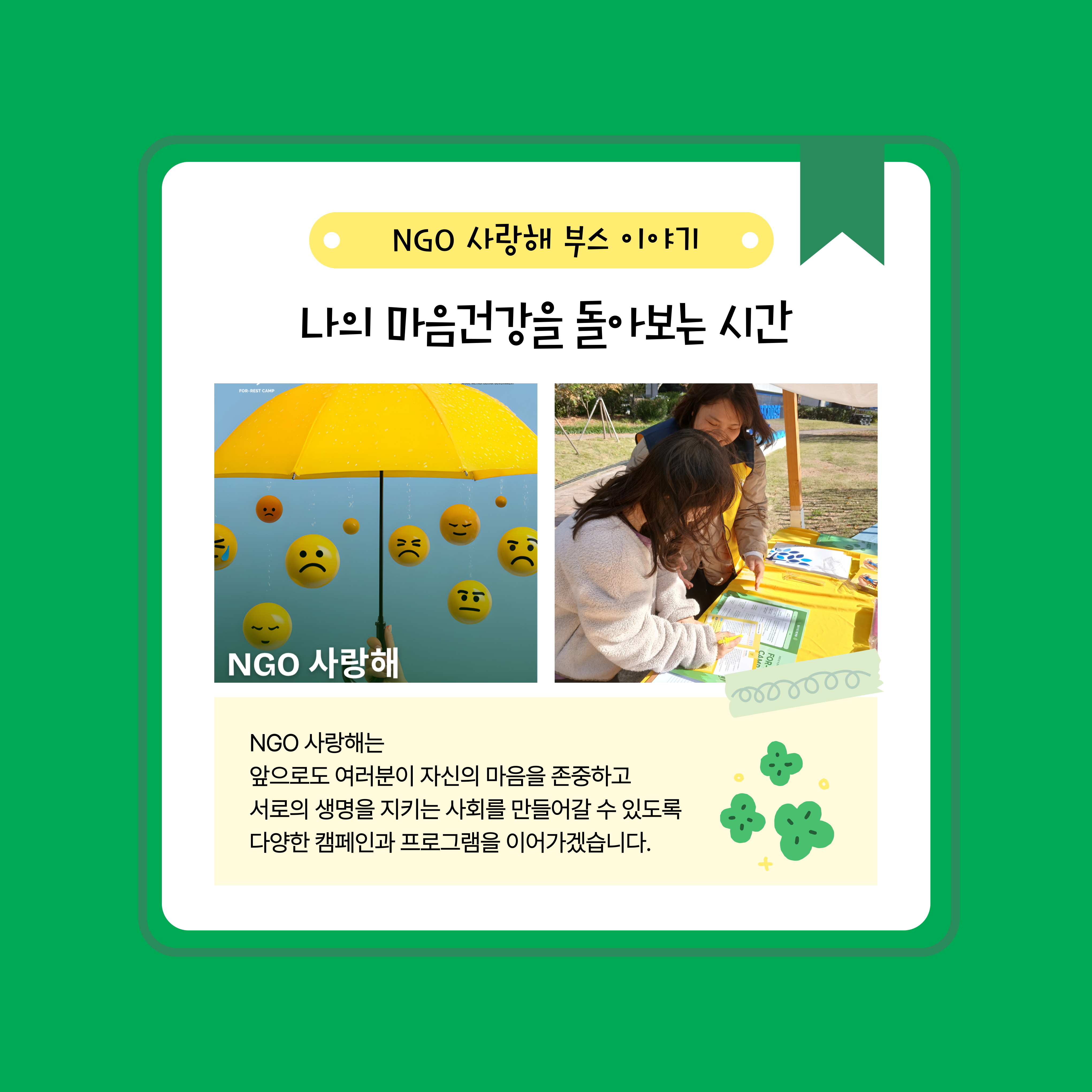 ✨ 마음이 힘들 때, NGO 사랑해는 언제나 당신의 편입니다.👉도움받기
